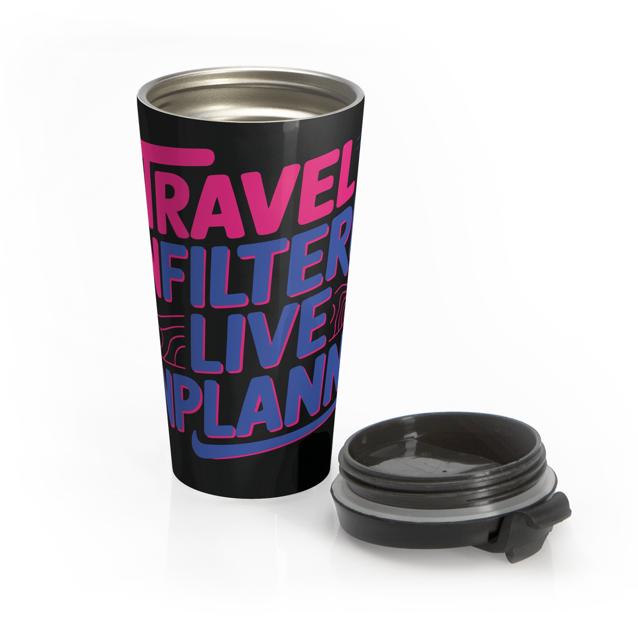 Travel Filter Stainless Steel Travel Mug — Live, Love, Explore Graphic Tumbler